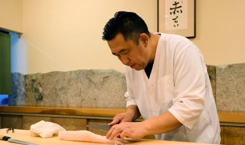 Connect with the region’s spirit at the sacred Oyamazumi Shrine and/or Zenko-ji temple. Afterwards, join the heirs of Fisherman Fujimoto on the water for an unforgettable encounter with their masterful craft. Your day culminates in an exclusive dinner at the Michelin-starred sanctuary, 'Akakichi'..